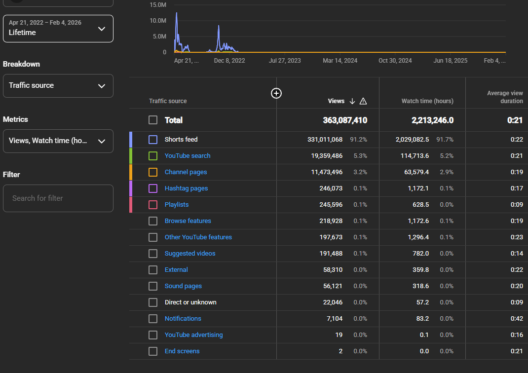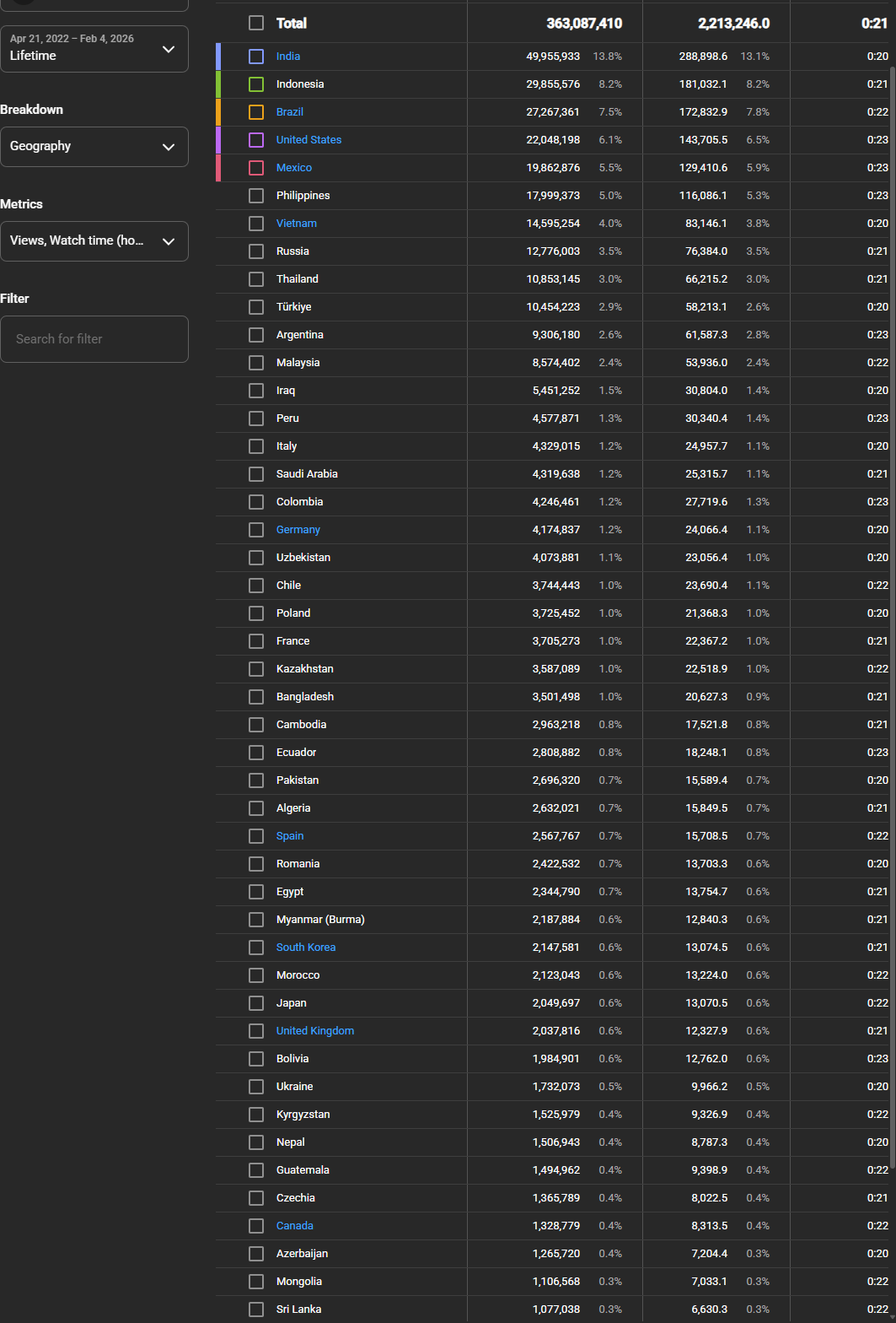 Massive lifetime reach: 363.1M views
