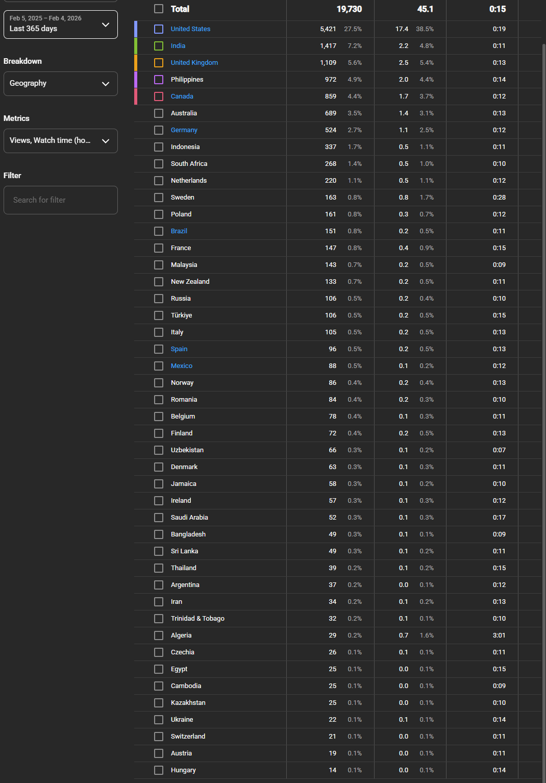 Country of subscribers (majority): India ( USA 6.1% )