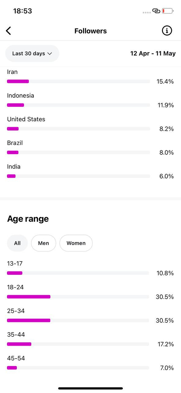 Country of followers (majority): International