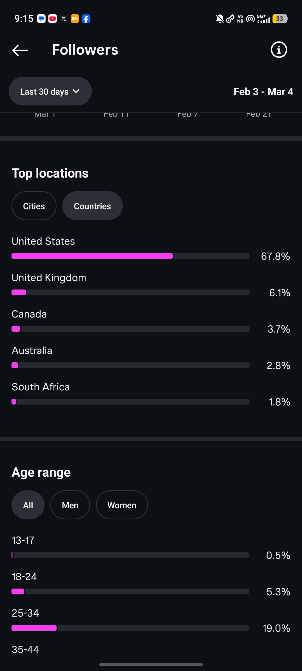 Country of followers (majority): USA
