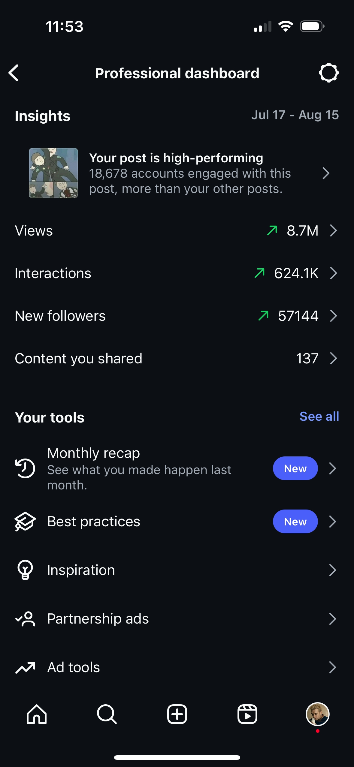 Promotion methods used? (Organic/S4S/Follow Unfollow/Engagement Networks): Organic(Reels+Posts)