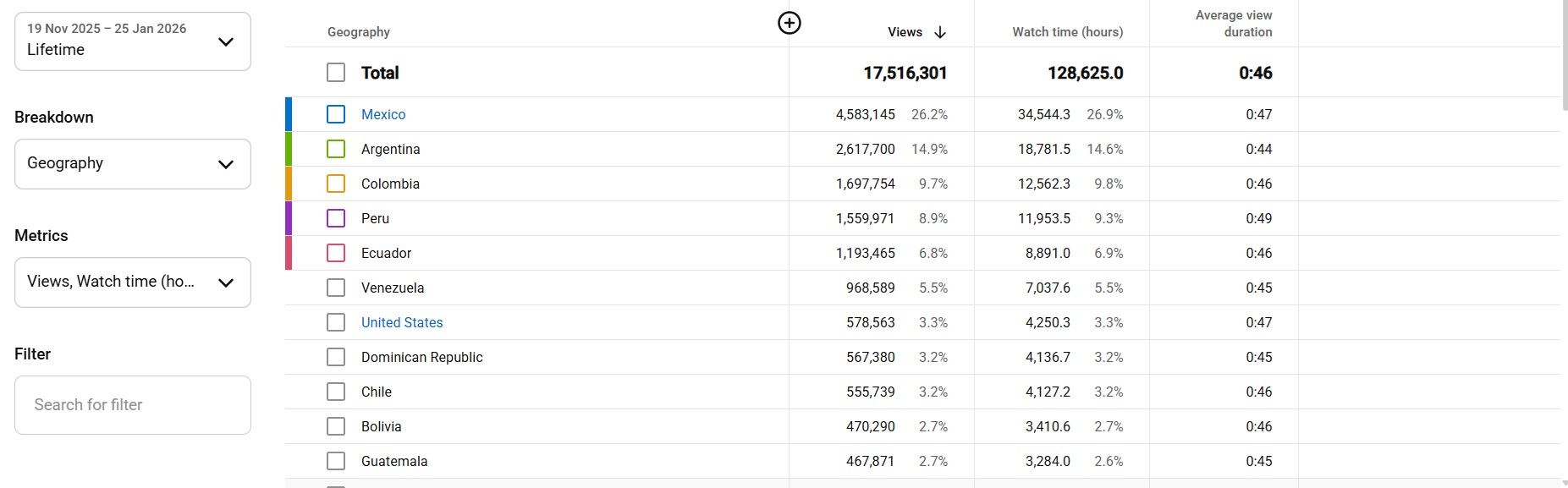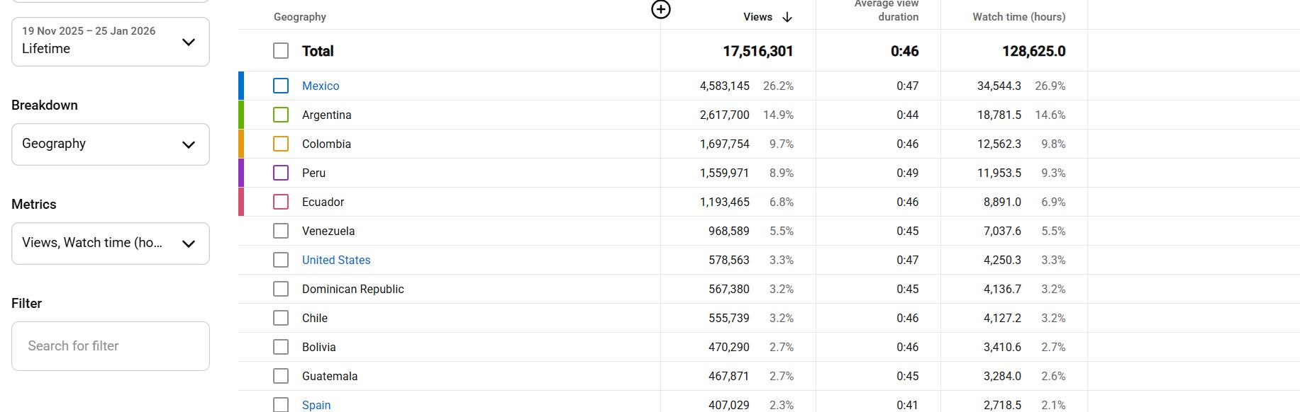 Country of subscribers (majority): Mexico, Argentina, Colombia