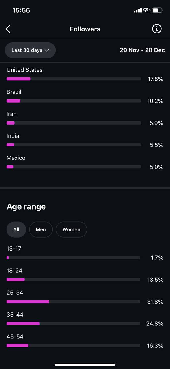 Country of followers (majority): United States