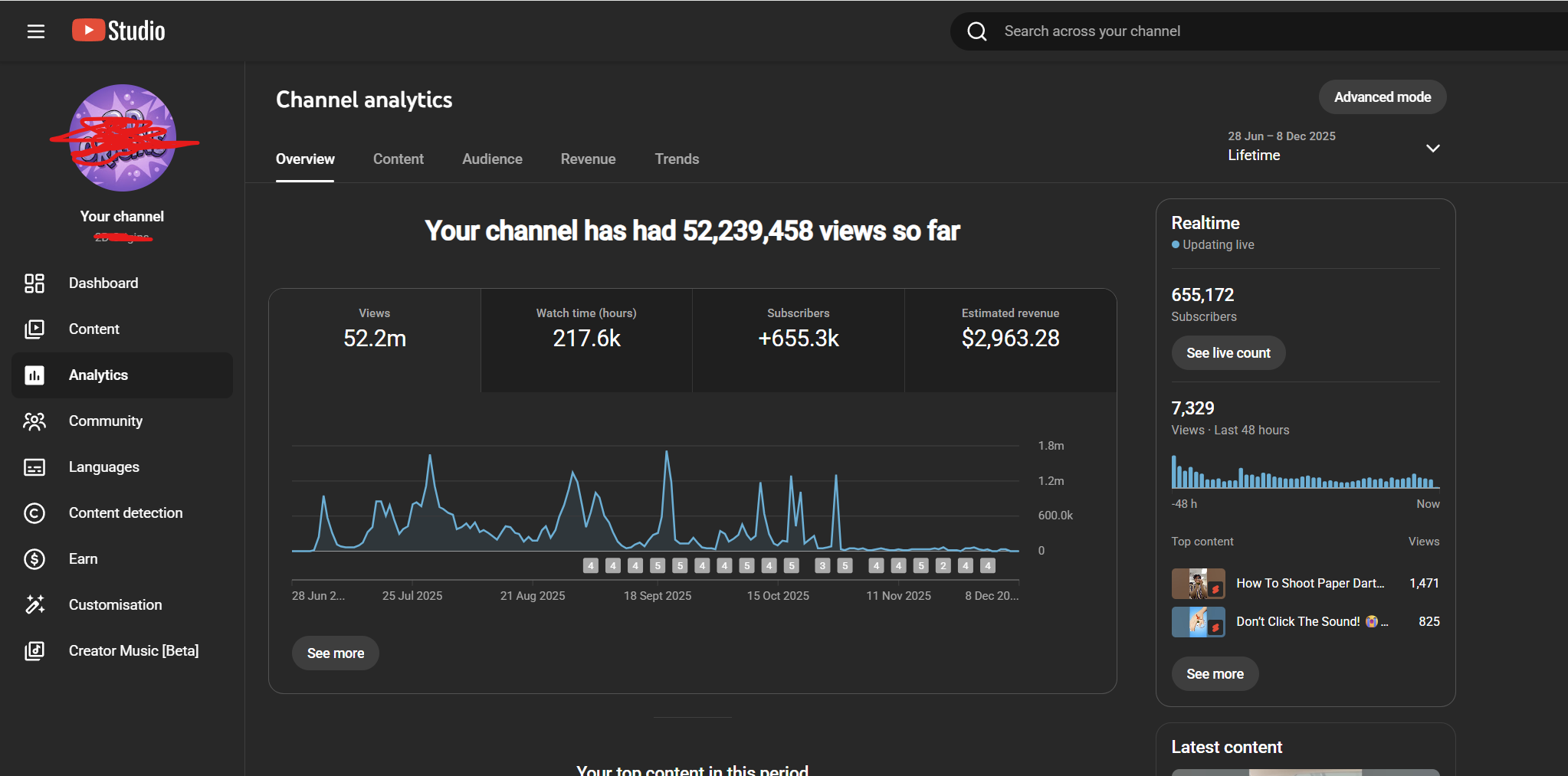 Channel size (655K subs) gives massive push to new uploads
