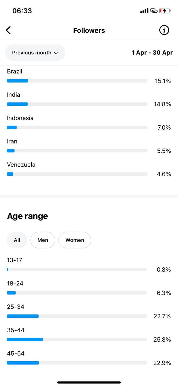 Country of followers (majority): International