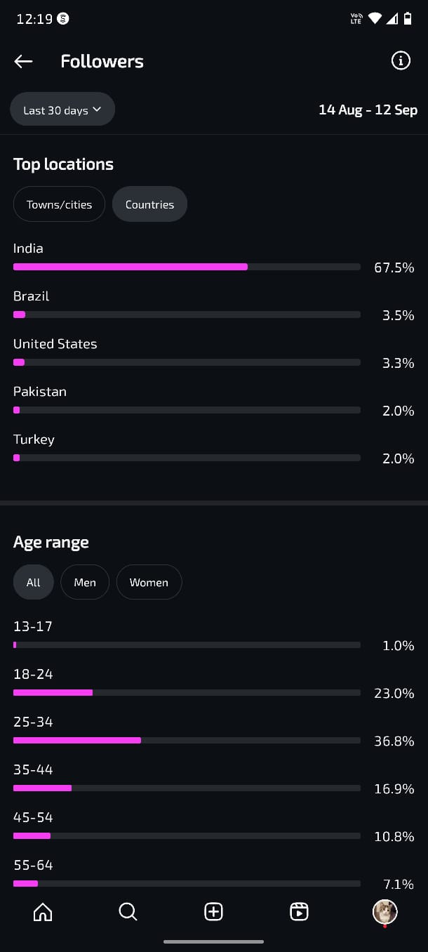 Country of followers (majority): India