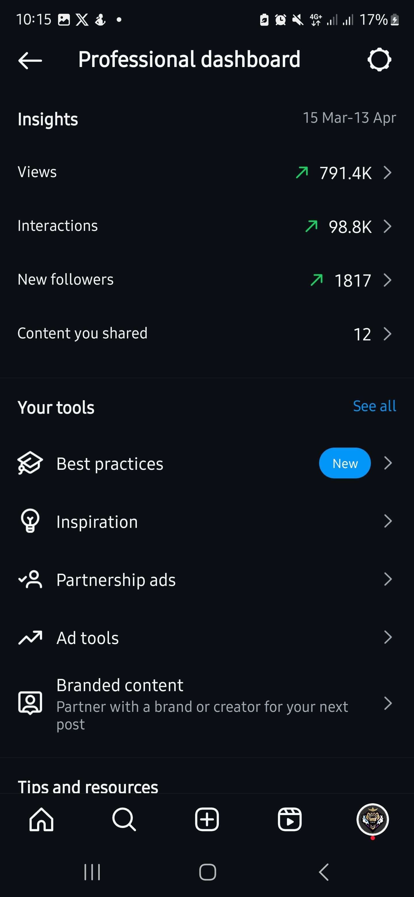 Insights of the account :