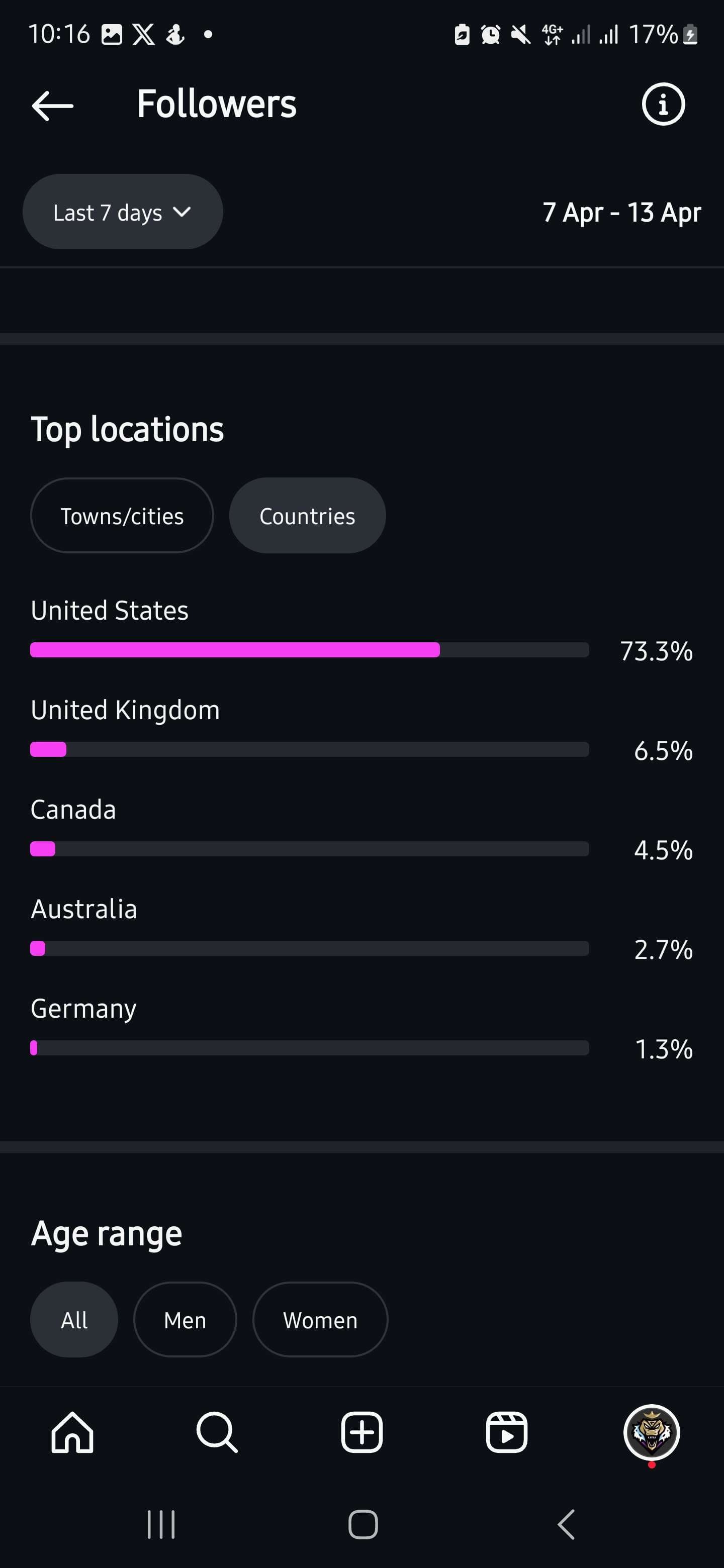 Country of followers (majority): United States