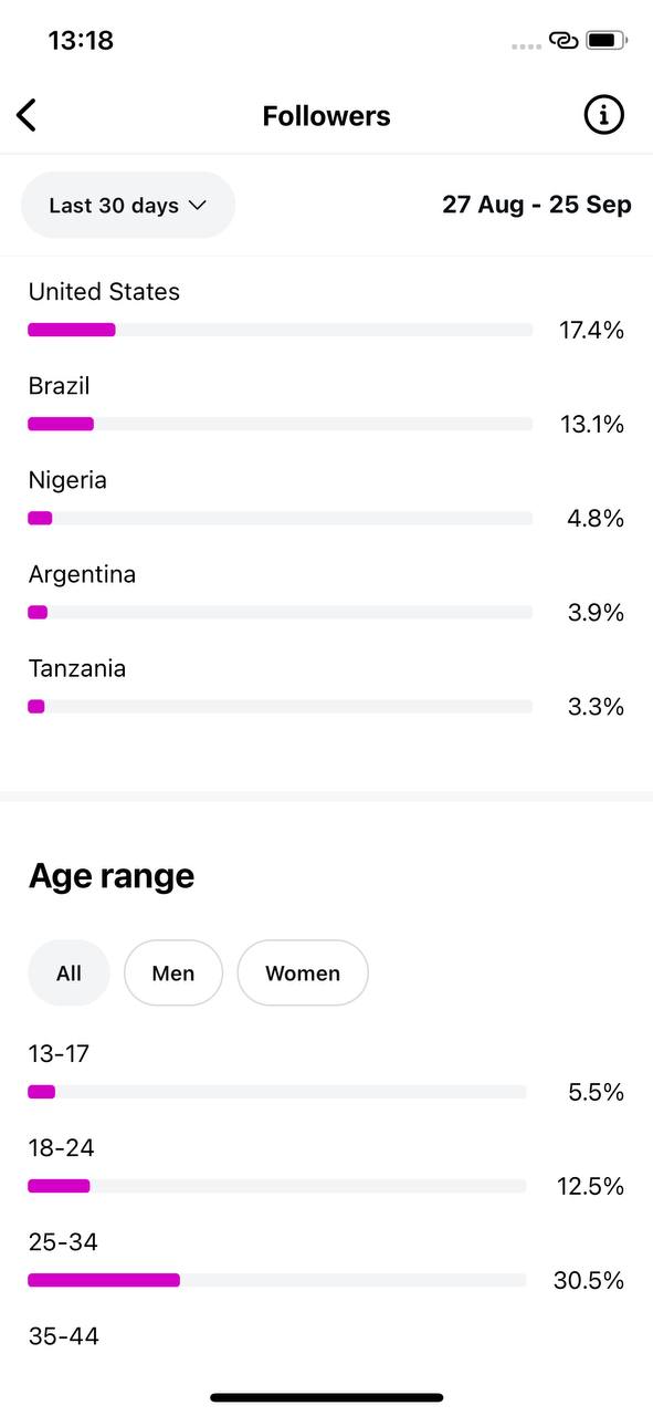 Country of followers (majority): United States