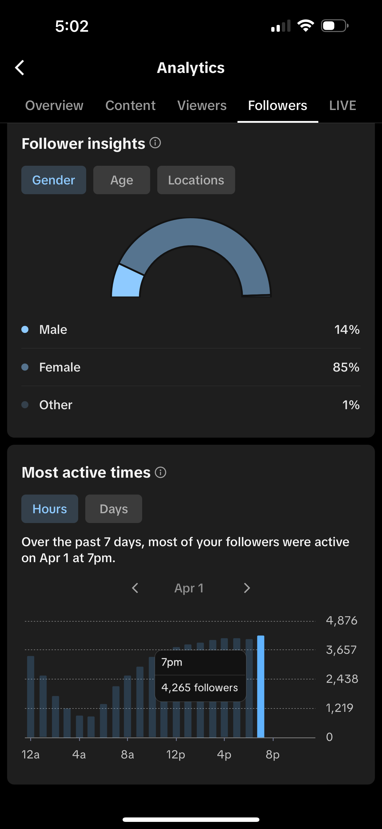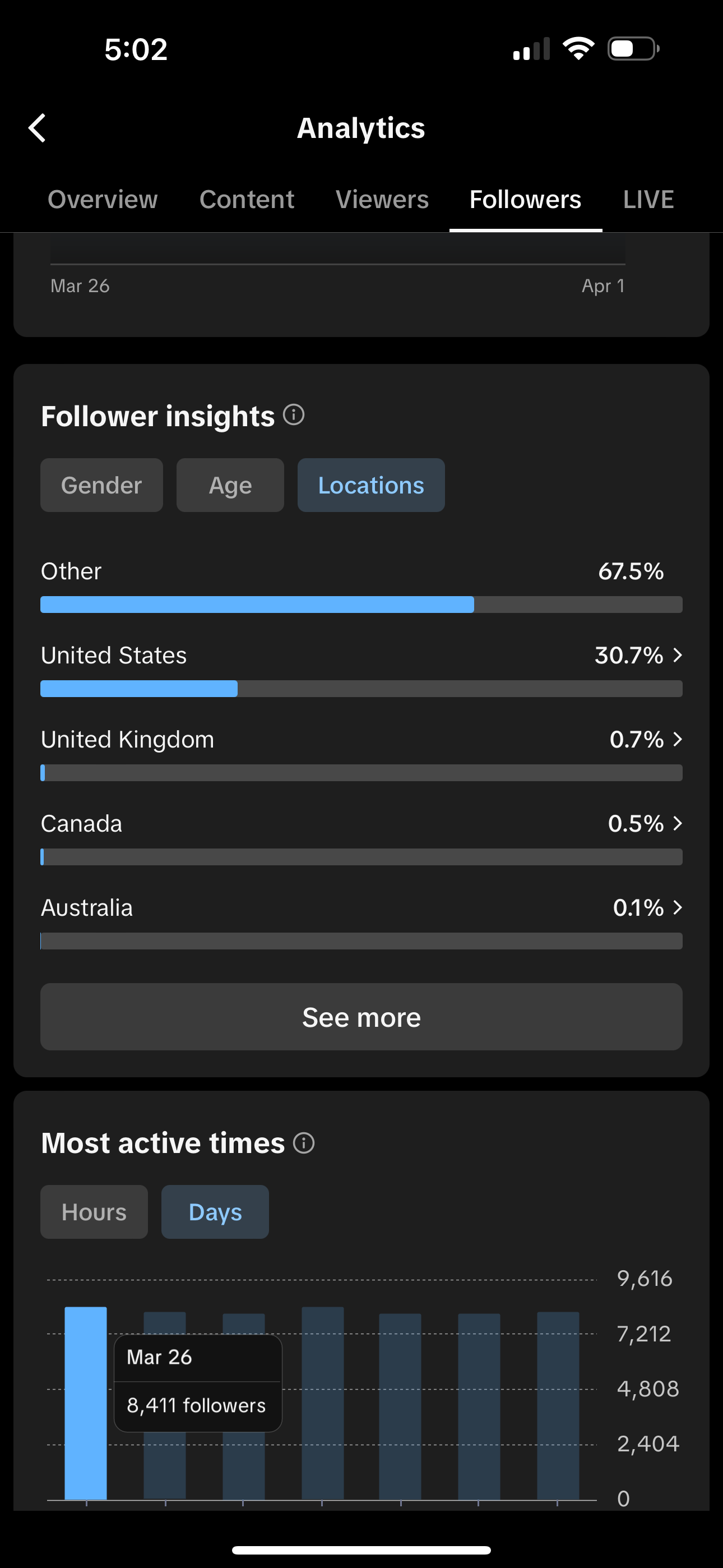 Country of followers (majority): USA