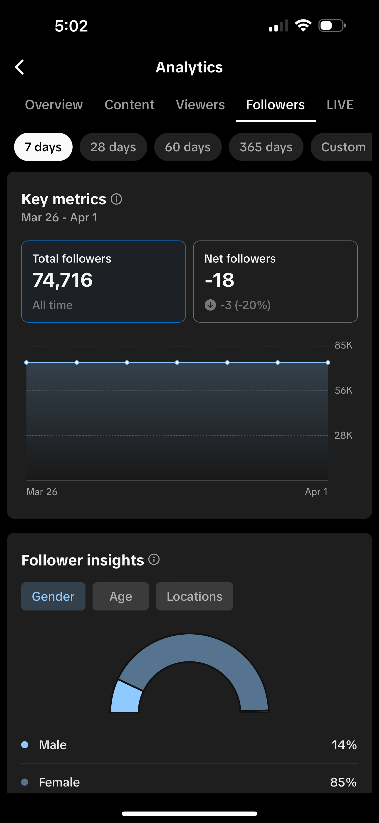 Amount of followers: 74.3k