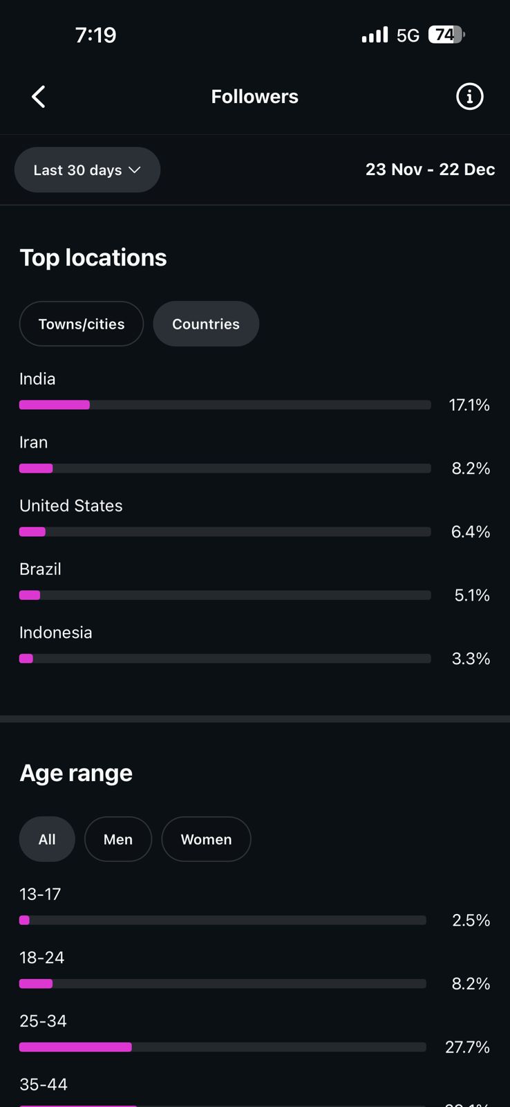 Country of followers (majority): International