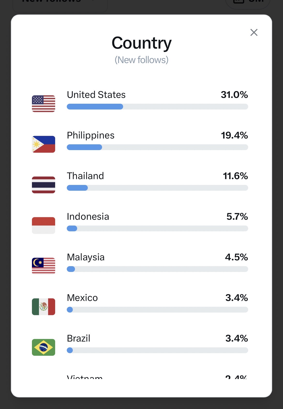 Country of followers (majority): USA