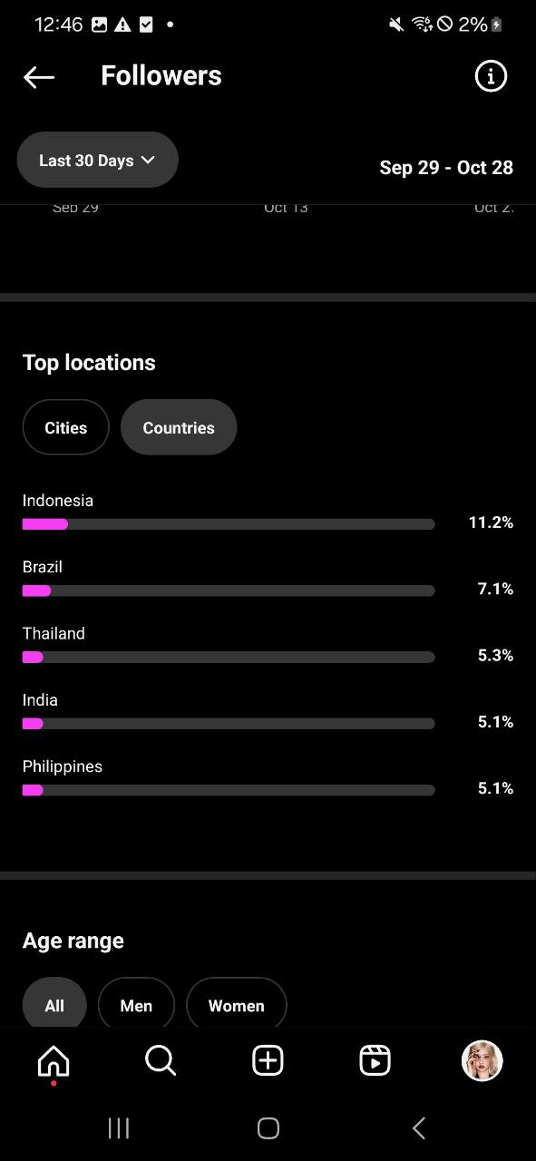 Country of followers (majority): international