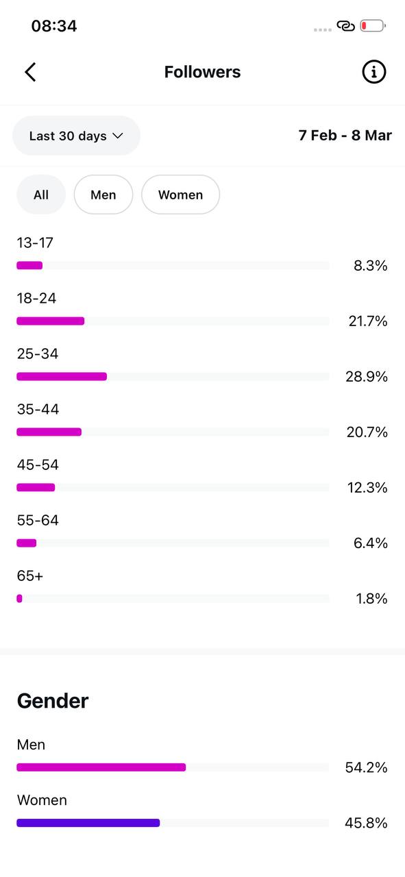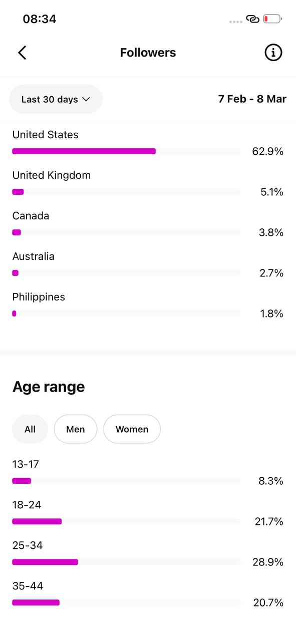Country of followers (majority): United States