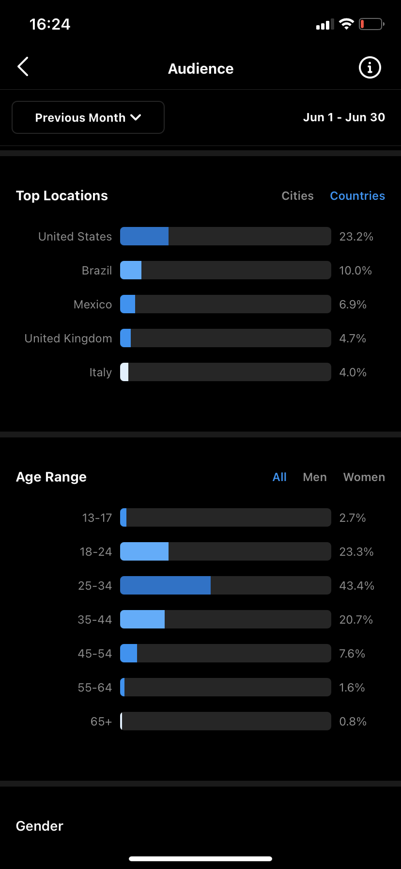 Country of followers (majority): US