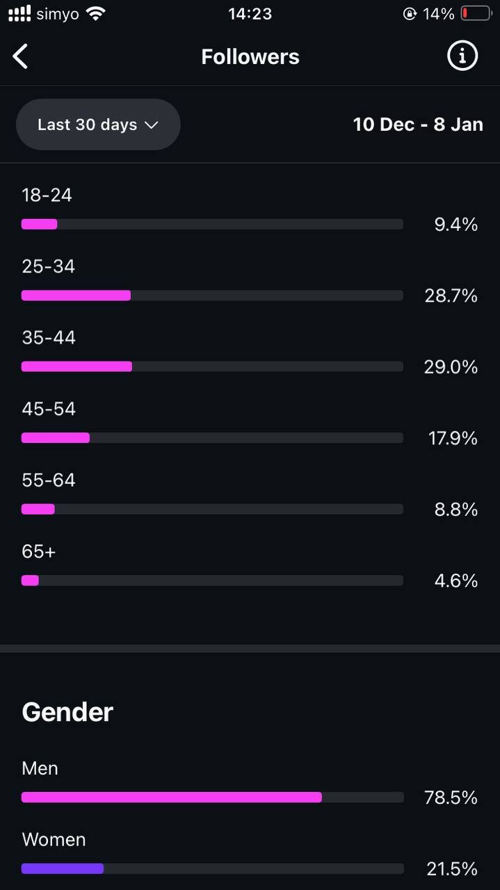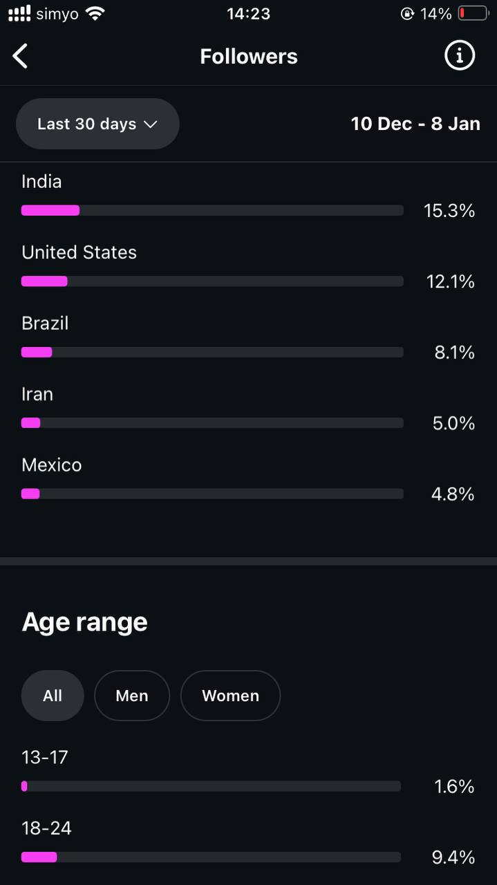 Country of followers (majority): International