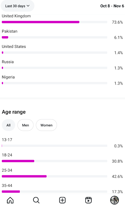 Country of followers (majority): United Kingdom
