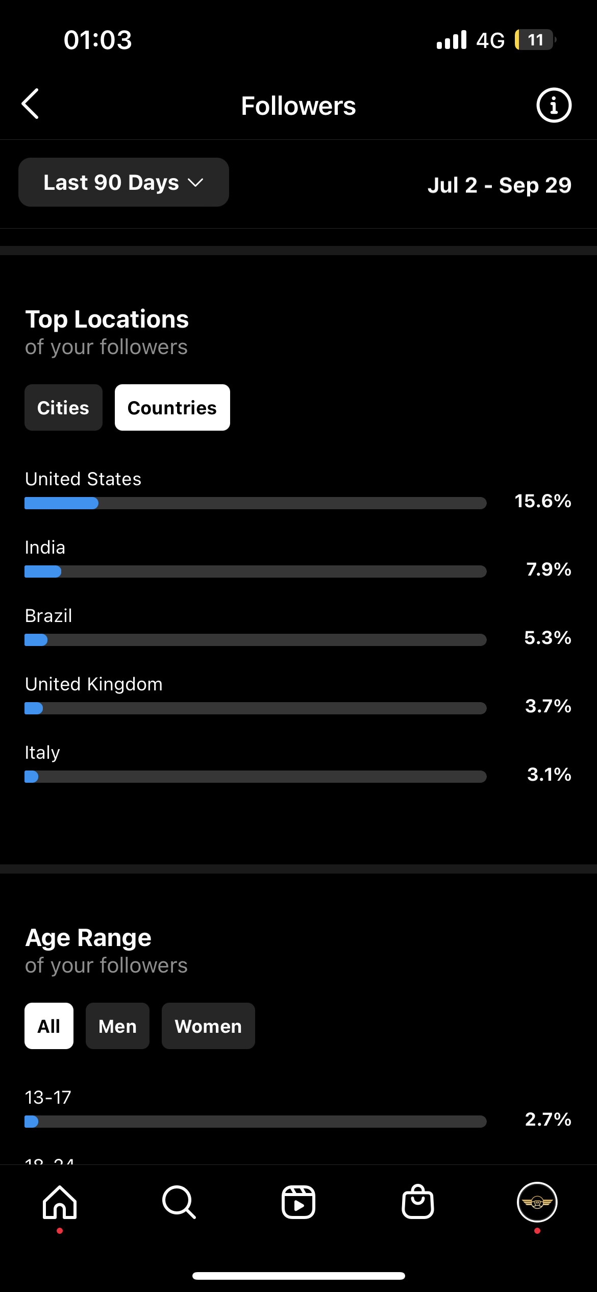 Country of followers (majority): United States