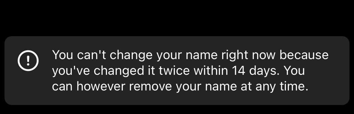 You can’t change your name right now because you’ve changed it twice within 14 days. You can however remove your name at any time.