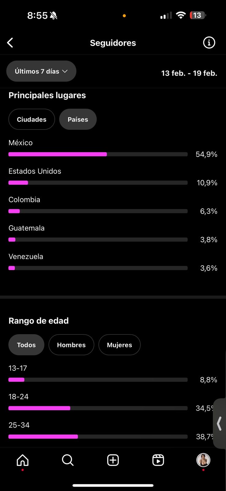Country of followers (majority): Mexico, United States