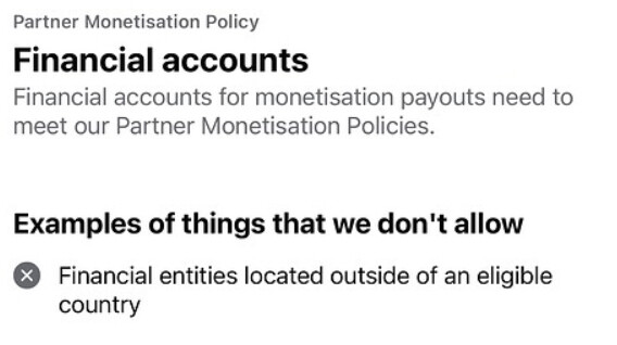 Setting up a new payout account for your Facebook content monetization, OR