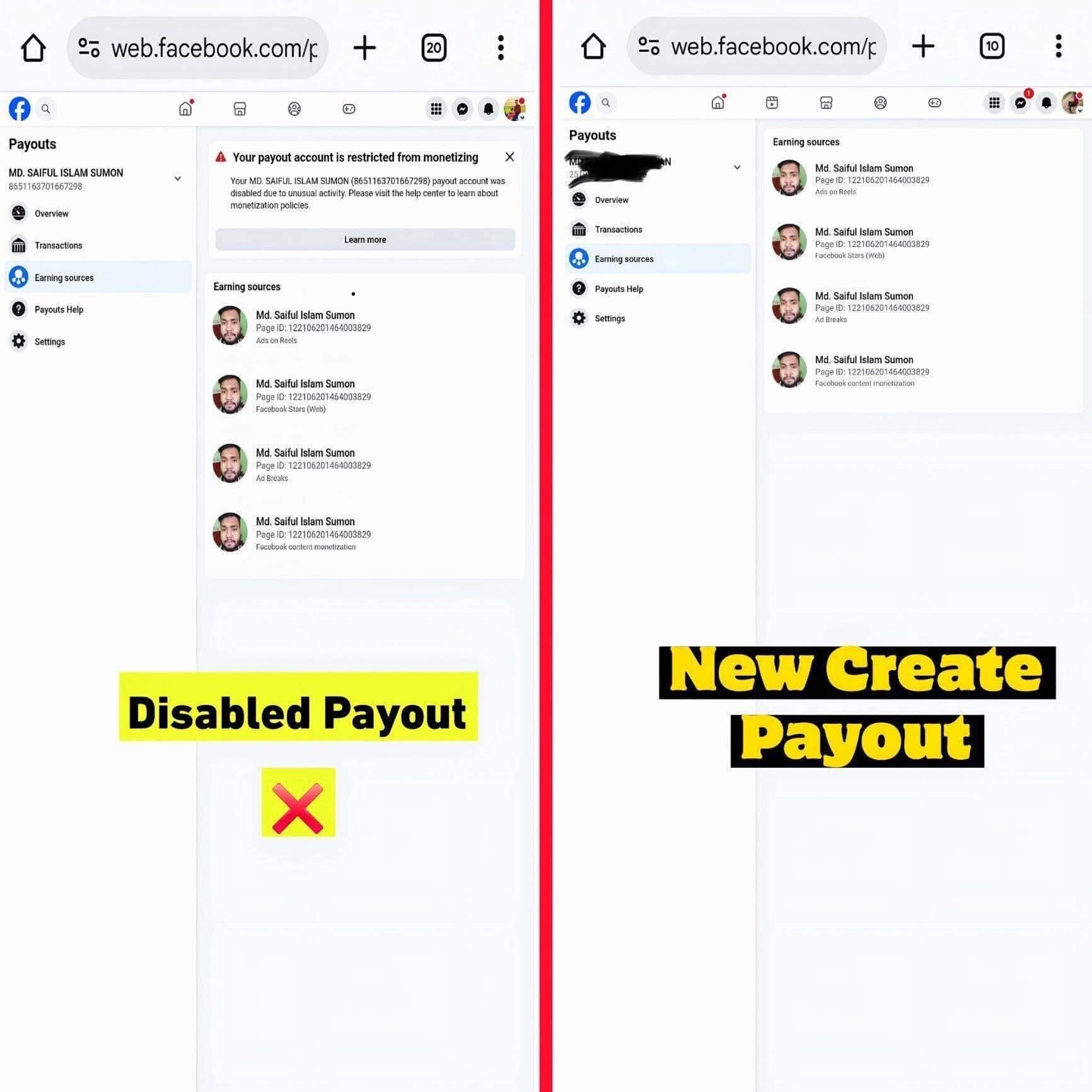 I can create a brand new payout for you on your desire details and put your previous Facebook content monetization page whose payout is disabled or learn more into this new payout. Now once this is done, you will be able to receive payments from your page again.
