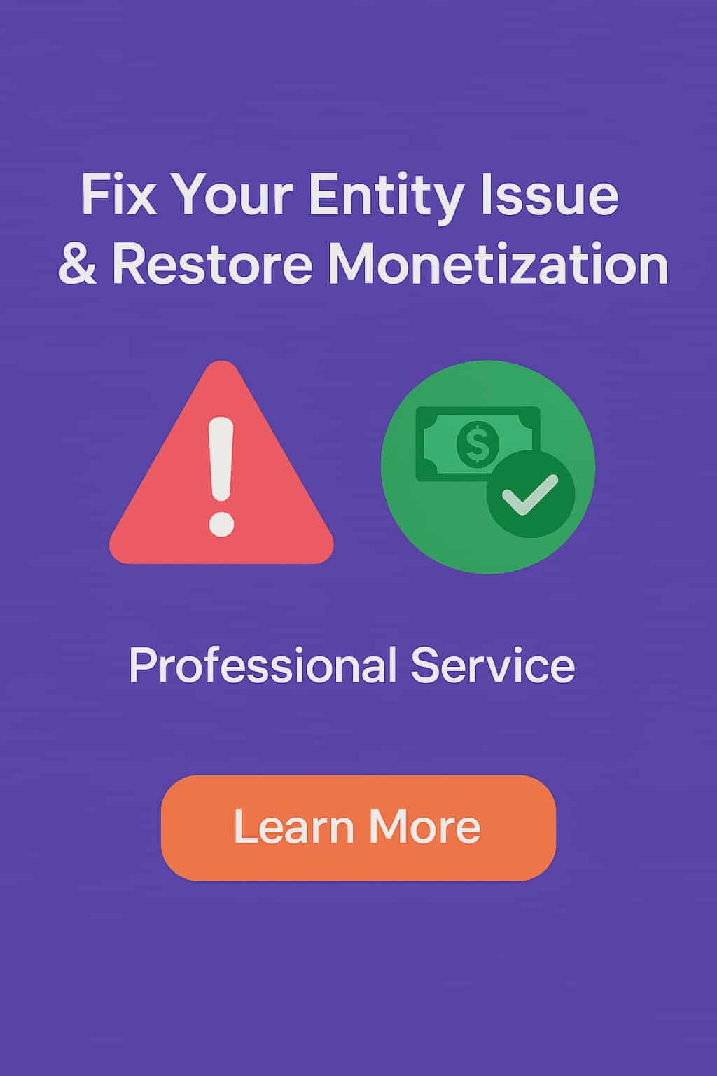 I provide support to resolve entity-related issues that affect Page Quality and prevent monetization. My goal is to help you restore your monetization tools and reconnect them to a new payout account.