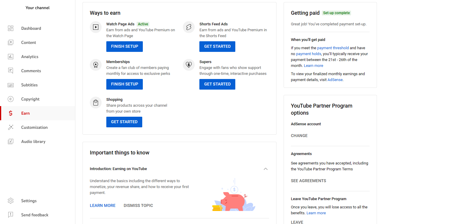 Sources of income: Google AdSense monetization. In addition, you can also sell direct in-video ads (pre-rolls and integrations), as well as additional ads (in the Community section, and also in Stories).