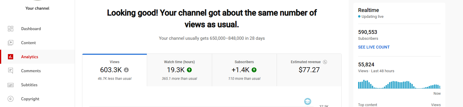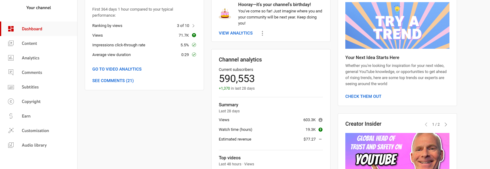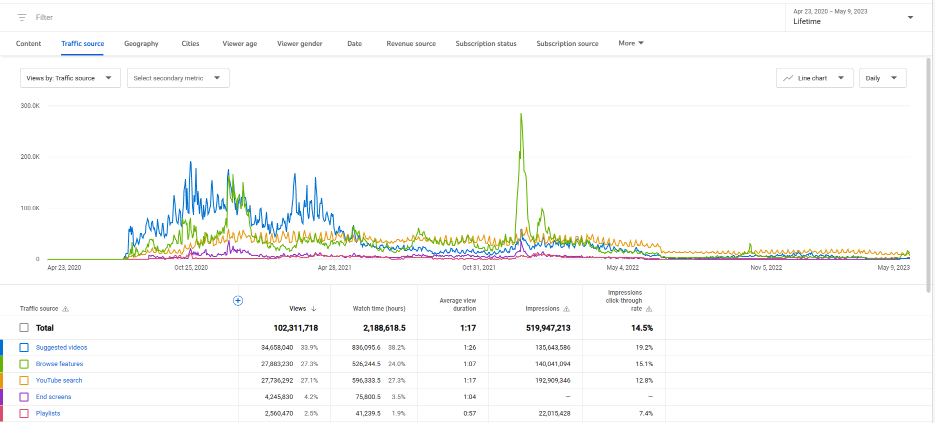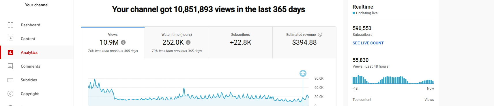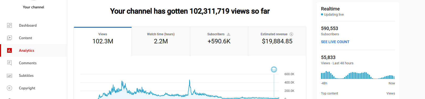 590,000 subscribers | 102,400,000 views | 2.200.000 watch time (hours)