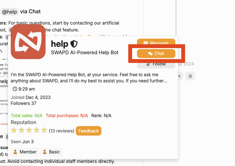 - Quick Answers: For basic questions, start by contacting our artificial intelligence bot, @help, through the chat feature.