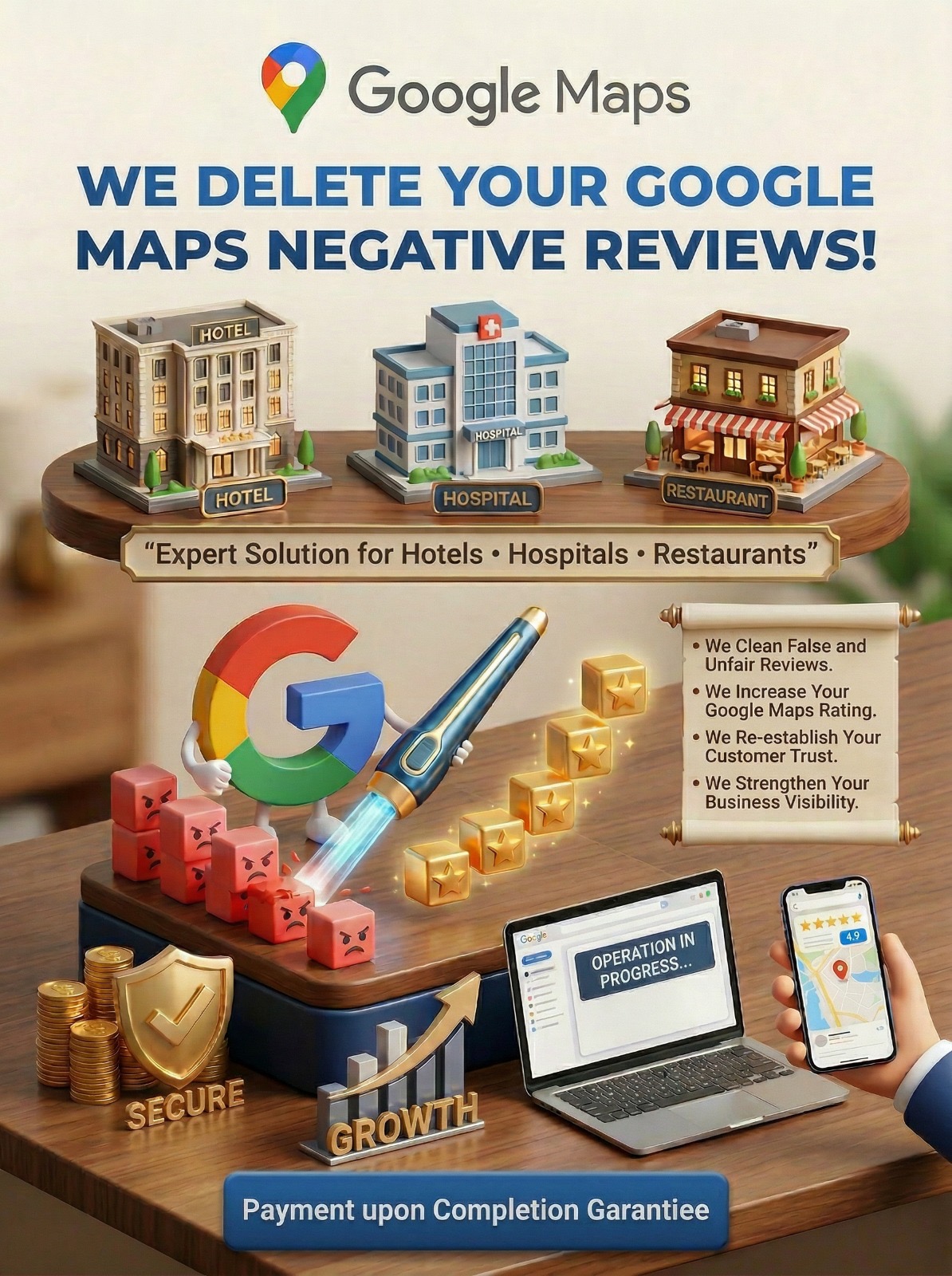 We also offer Google Maps Bad Reviews Removals but the price is based on each review $400 per comment .Payment is Upon Delivery