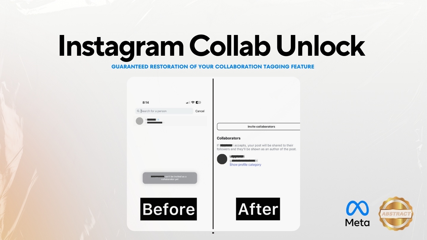 If you’re unable to invite others as collaborators - even when their account is eligible - your collab feature is likely soft restricted. This service removes that block directly through M and fully restores the ability to tag collaborators on posts and reels.