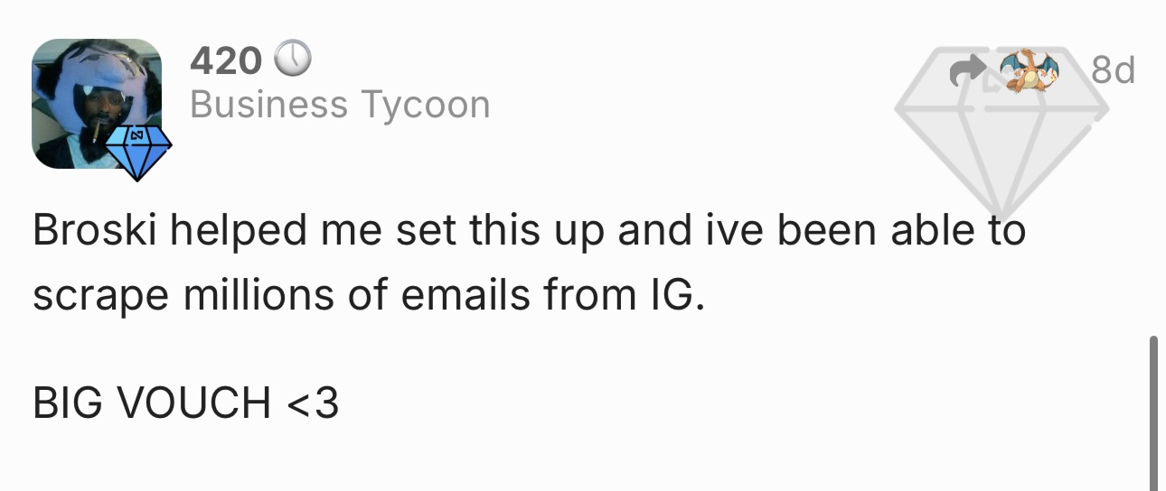 Yes. Unlike other SWAPD threads, I am willing to provide a warranty on my mentorship thread. If for some reason, this tool isn’t functioning and you’re unable to scrape then you’ll get a full refund. I only do good business, and I’m here to be a mentor and teach you how to scrape super targeted leads from Instagram for cheap. Not here to risk my reputation over a $250 deal like other mentorship threads.