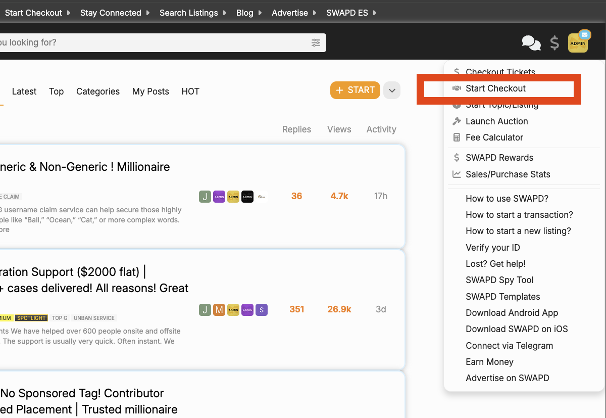 Starting a transaction on SWAPD is straightforward, but it’s important to follow each step carefully. Here’s a guide to beginning a Checkout Ticket once you’ve agreed on a deal with another user.