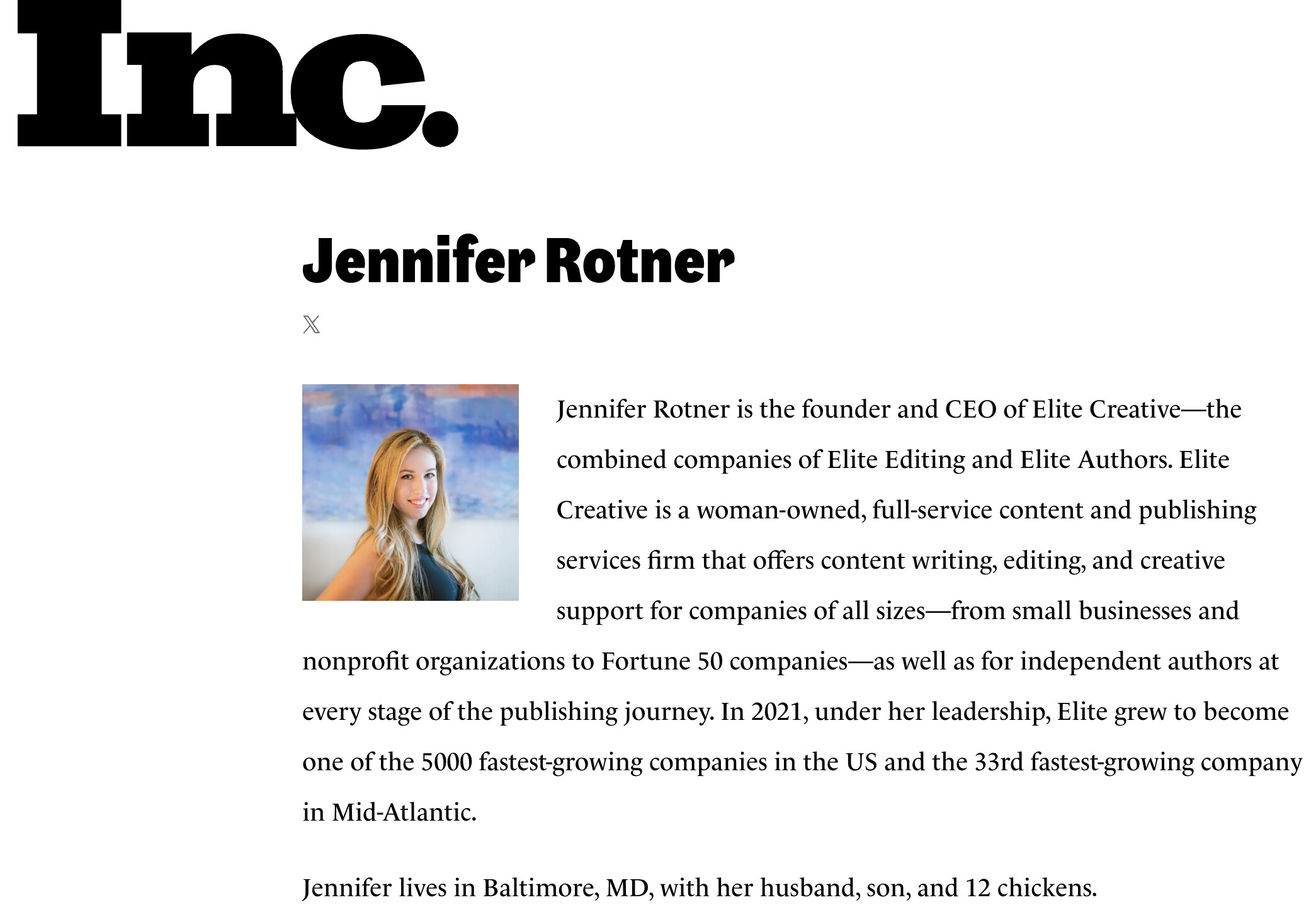 - Your official contributor profile on Inc.com: SAMPLE