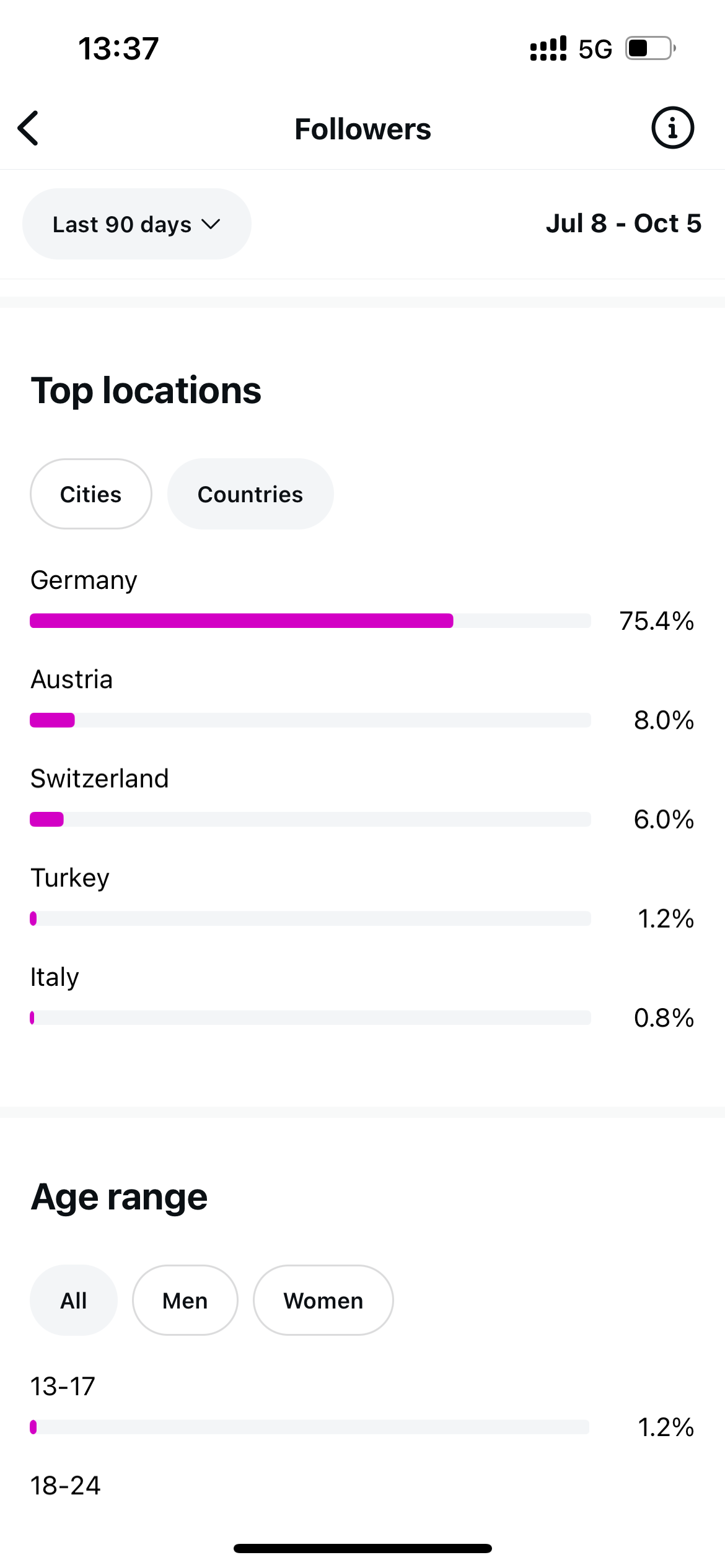 - Most followers are between 25–44 years old (no kids / meme crowd)