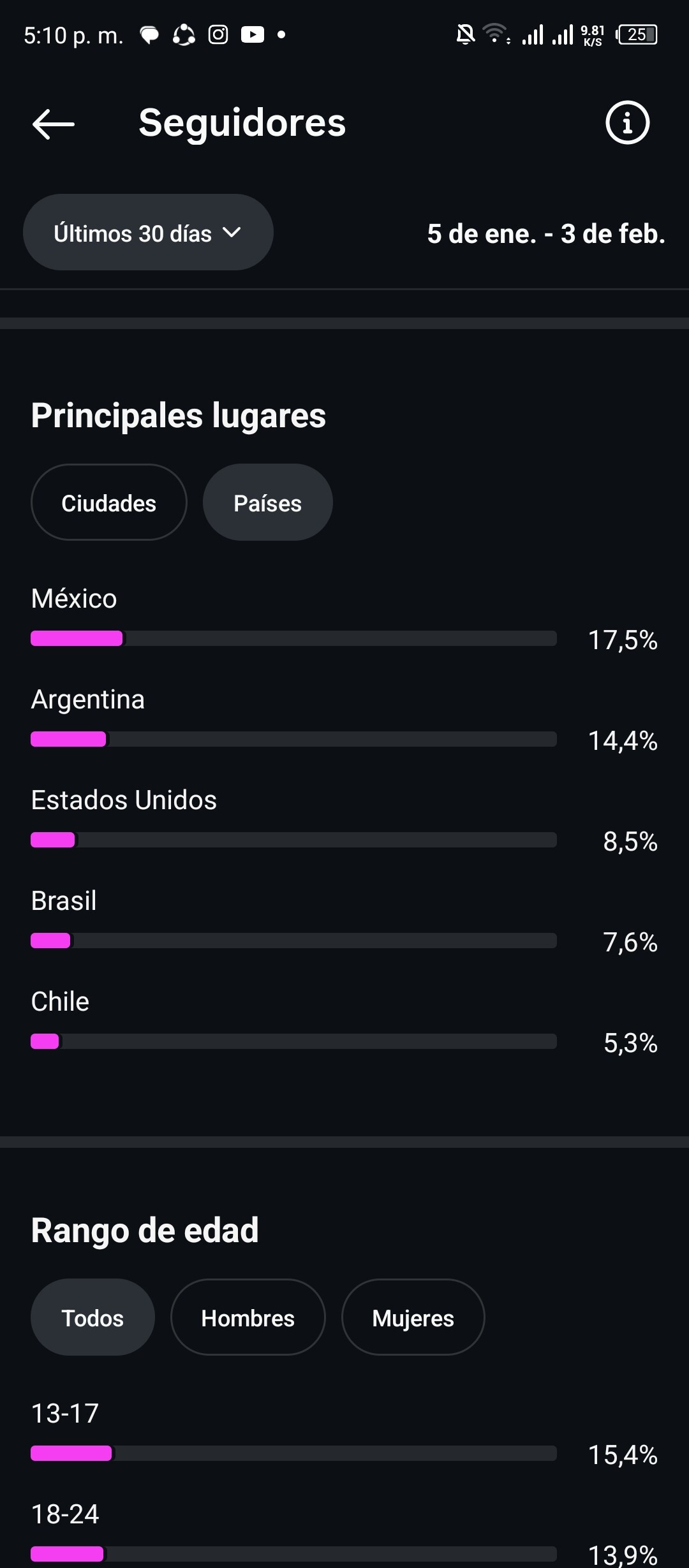 Country of followers (majority): México