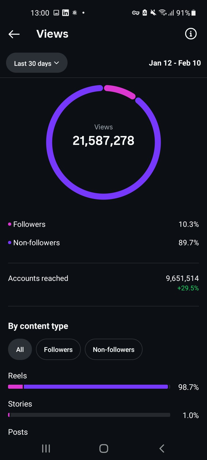 • Reels frequently receive high views and likes