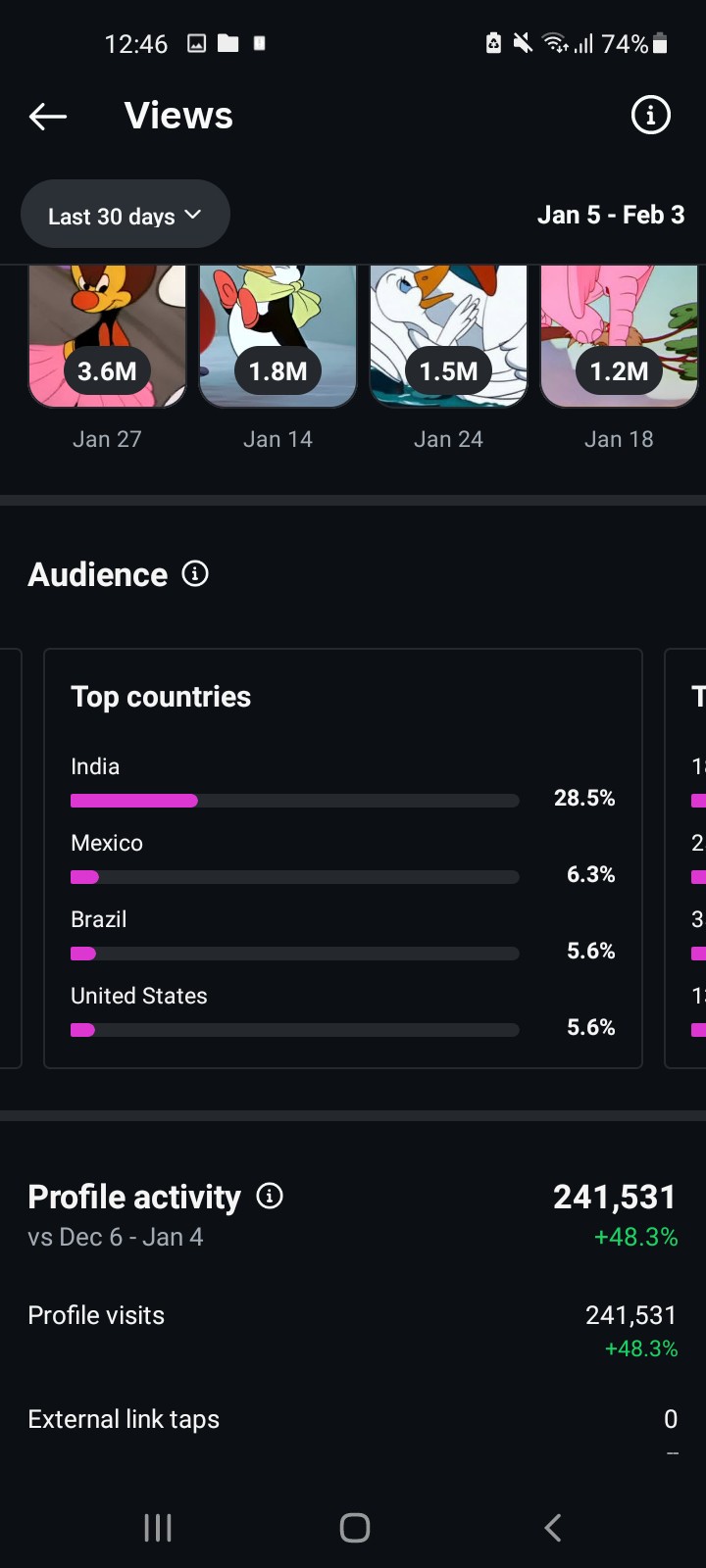 Country of followers (majority): India, Mexico, Brazil, United States