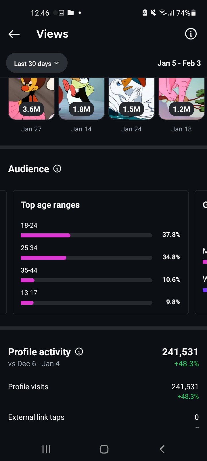 • Stories average 11k–15k views