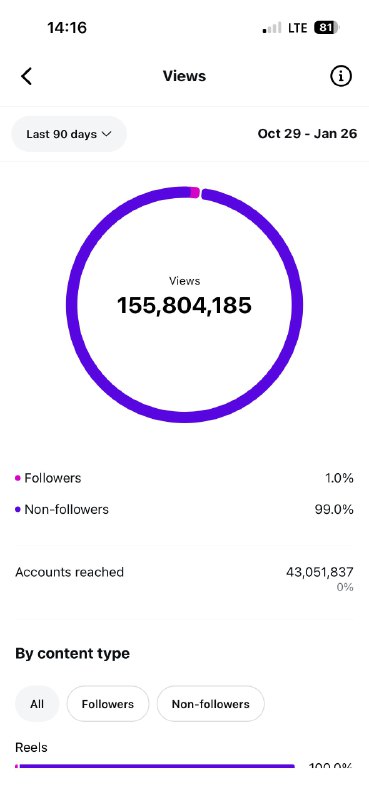 All organic (Reels, viral content, algorithmic reach)