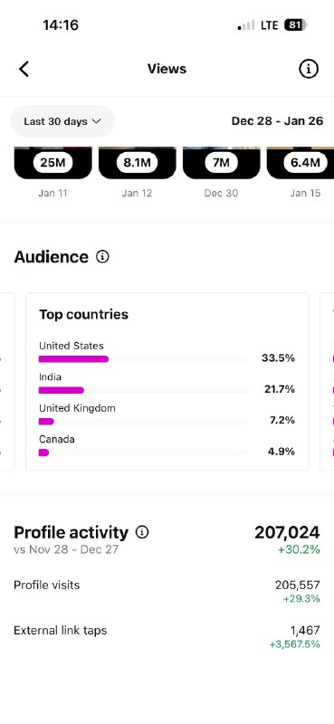 Country of followers (majority): USA (35–50%)