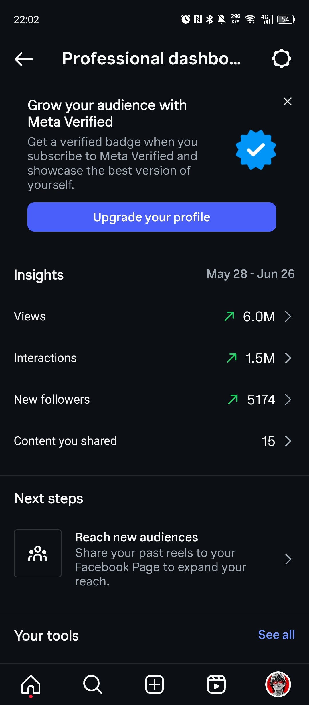 I’ve also added additional screenshots showing the page’s reach, impressions, content interactions, and follower growth.