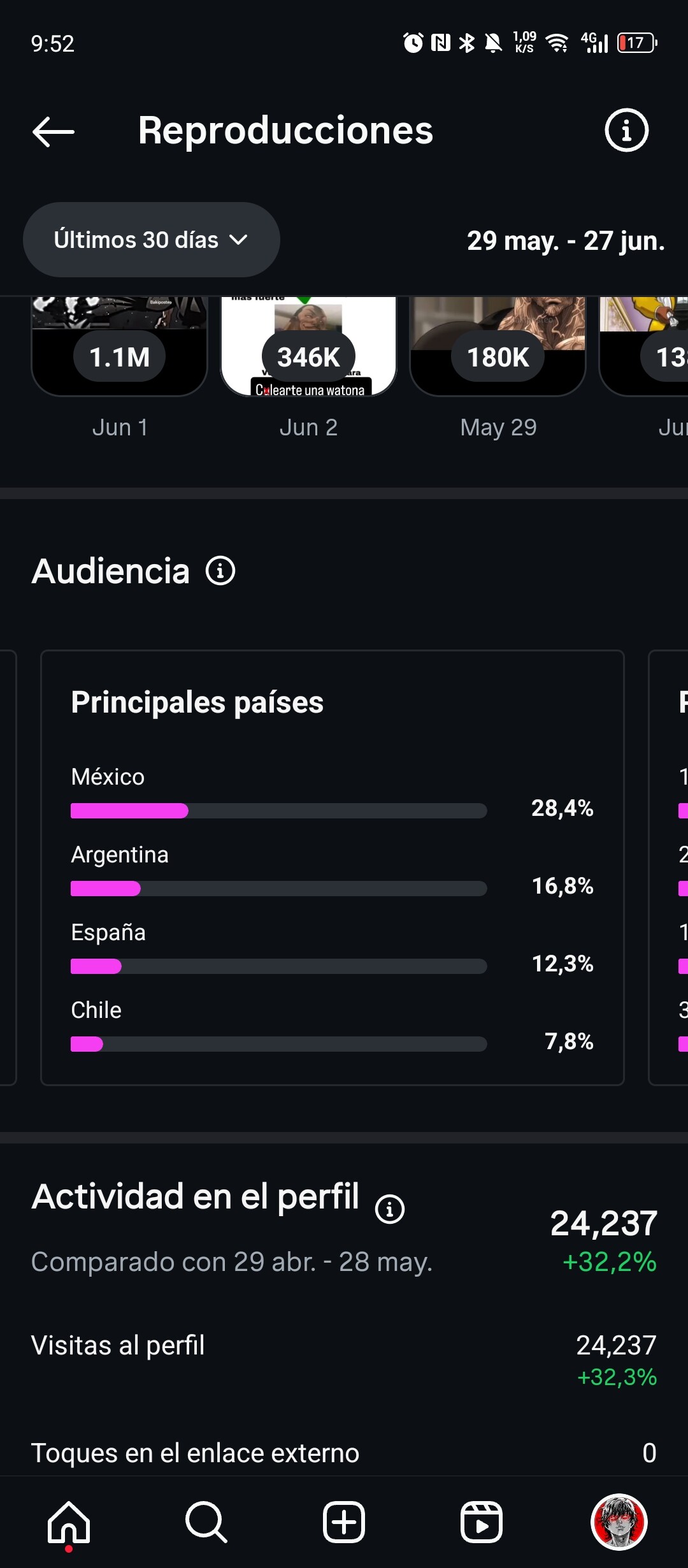 Country of followers (majority): México, Argentina, Chile, España.
