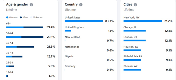 What truly sets this page apart is its premium audience. Around 85% of followers are based in the United States, giving you higher-value reach, stronger engagement quality, and better monetization potential.