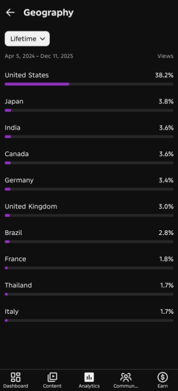 Country of subscribers (majority): worldwide