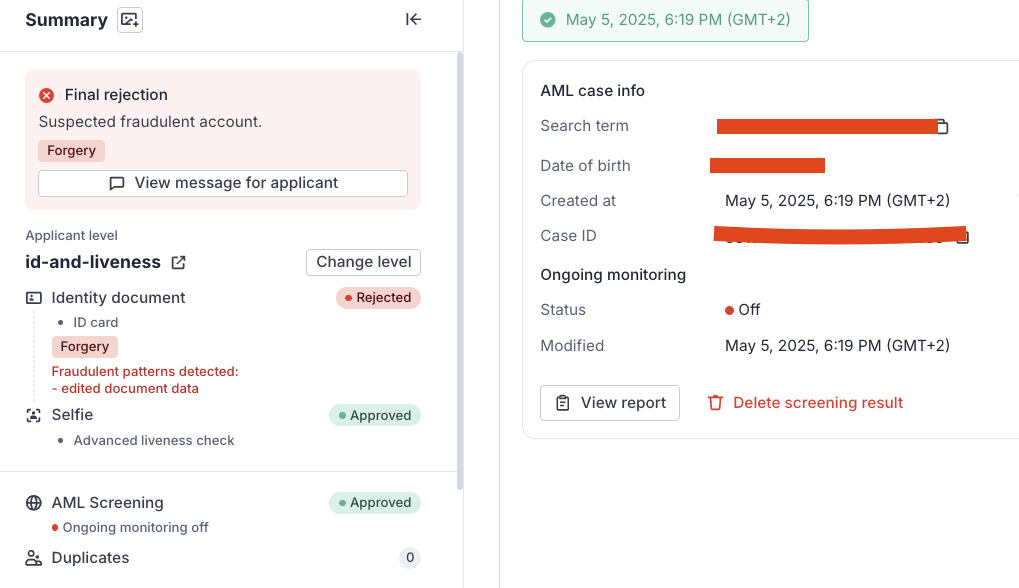 The above photo shows the system in action, it just rejected one user who tried to submit a fake id!