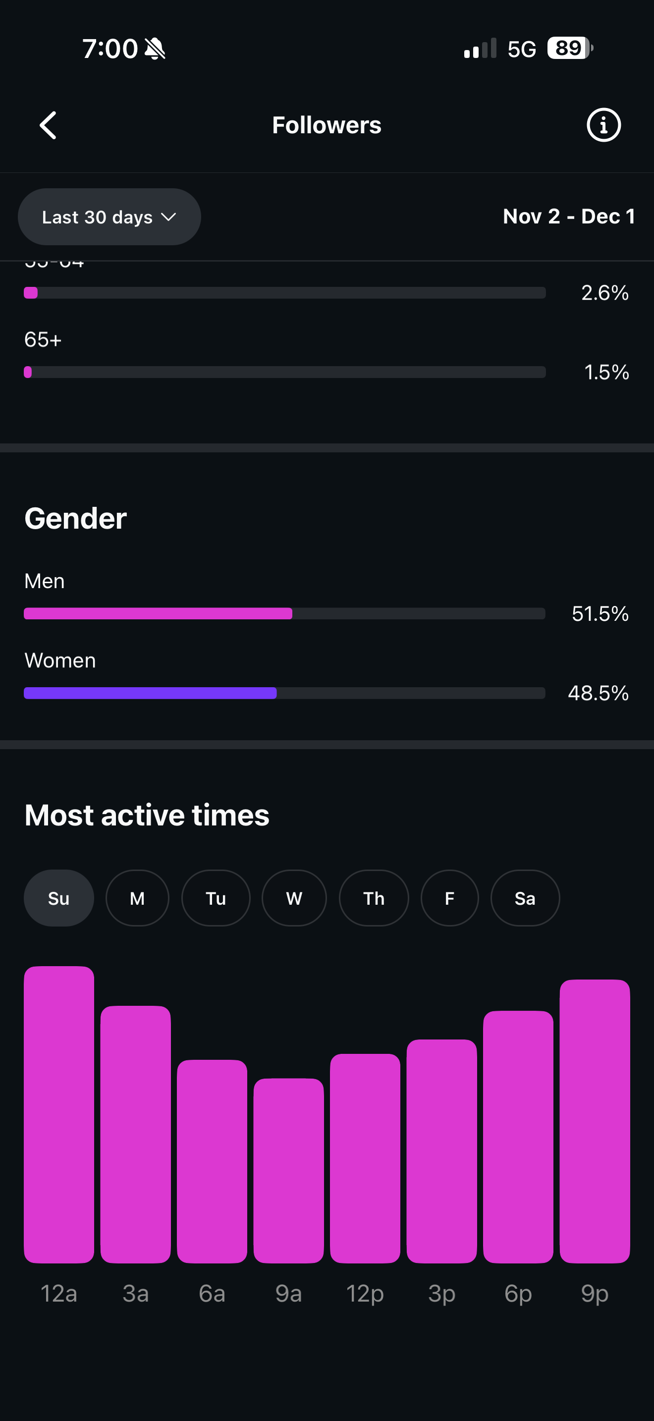 Country of followers (majority): United States (12%)