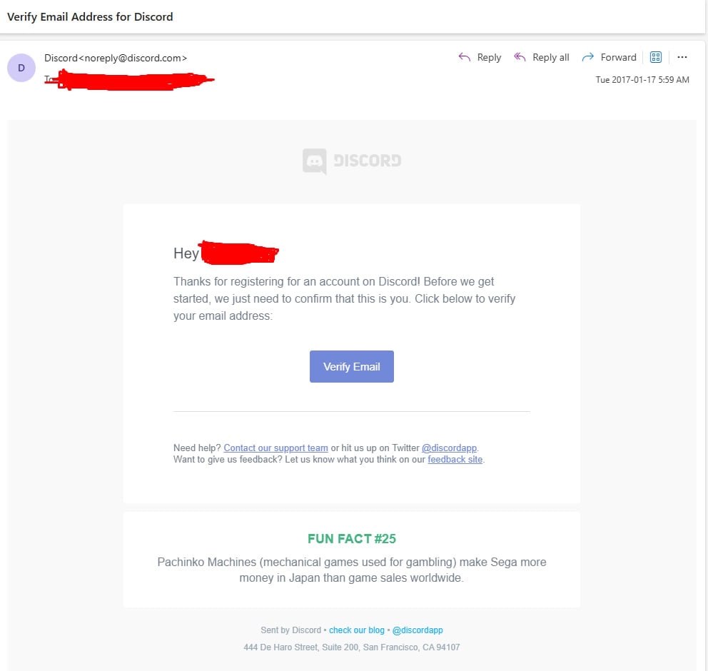 - Original email (OGE) from registration